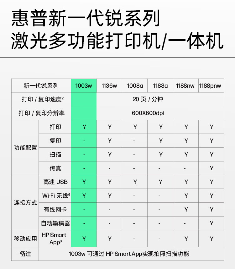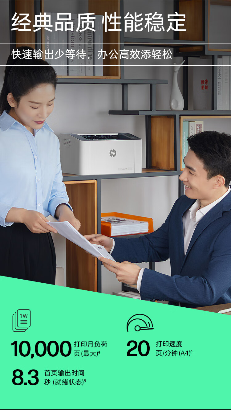 惠普(HP)1003w无线激光打印机打印机学生家用家庭打印作业打印小巧简约(103w升级款)
