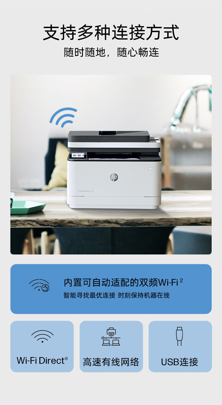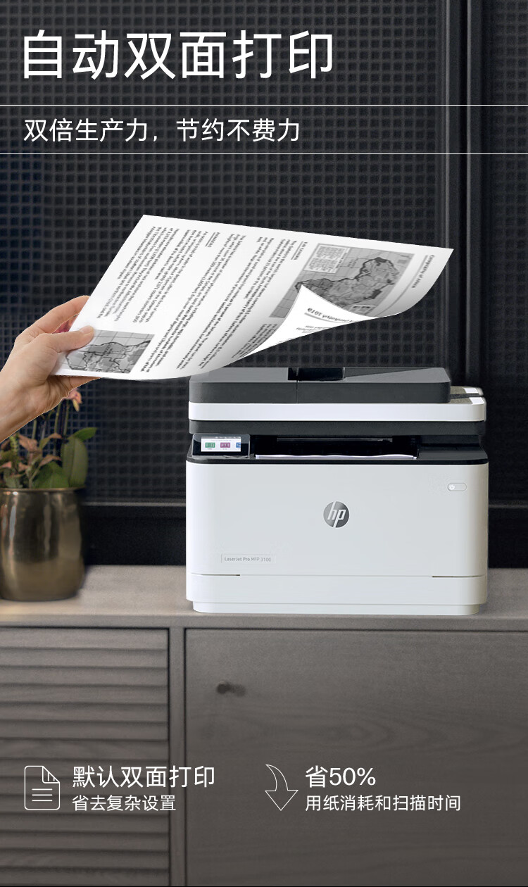 惠普(HP)3104fdw自动双面黑白激光无线打印机自动输稿打印复印扫描传真四合一一体机智能管理