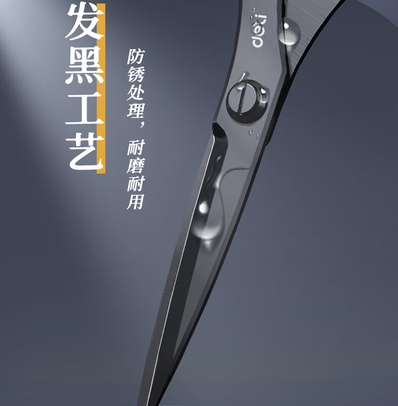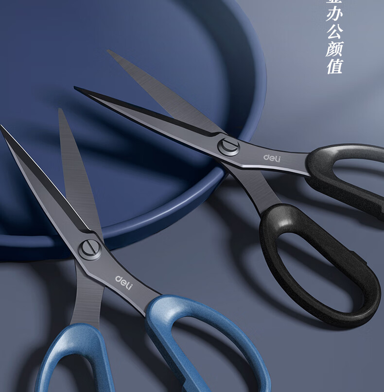 得力(deli)175mm人机造型剪刀黑色防锈处理办公用品黑77790