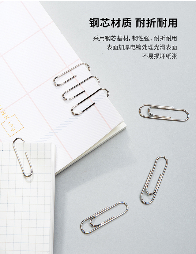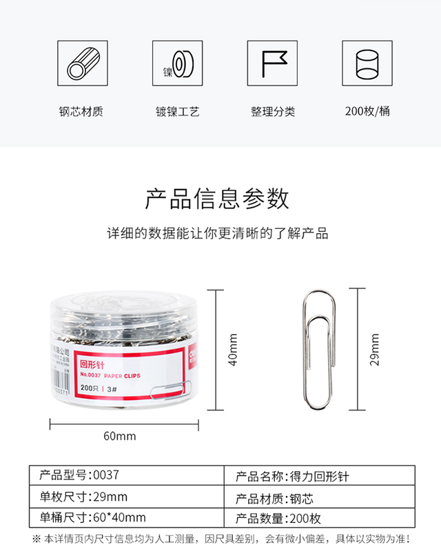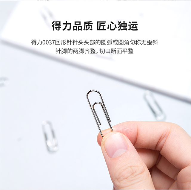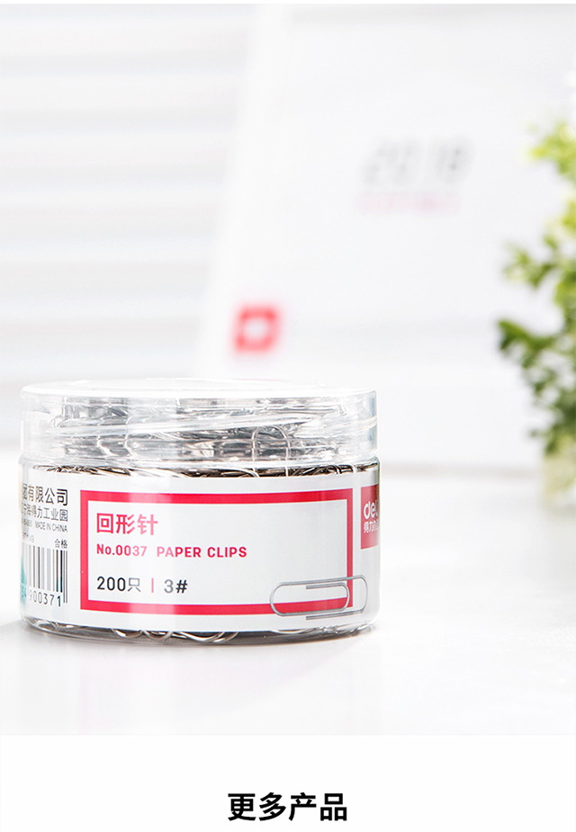 得力(deli)29mm镀镍回形针3#金属曲别针200枚/筒办公用品0037