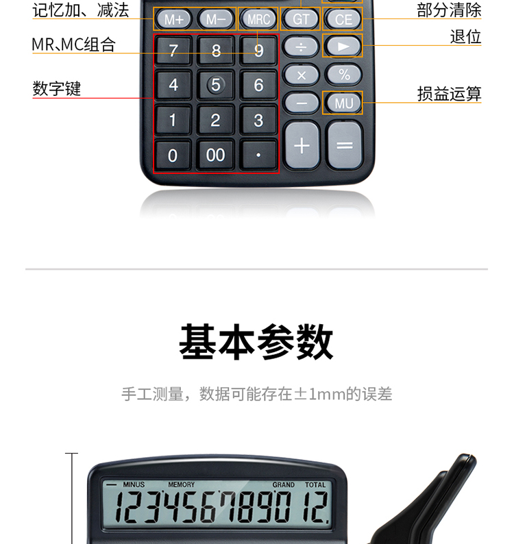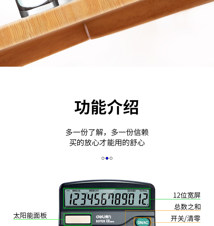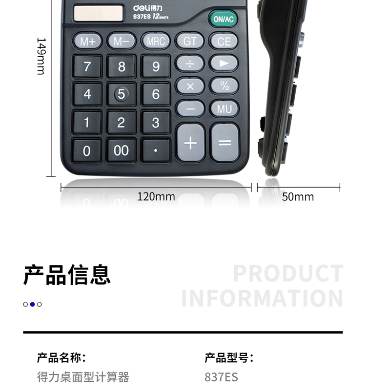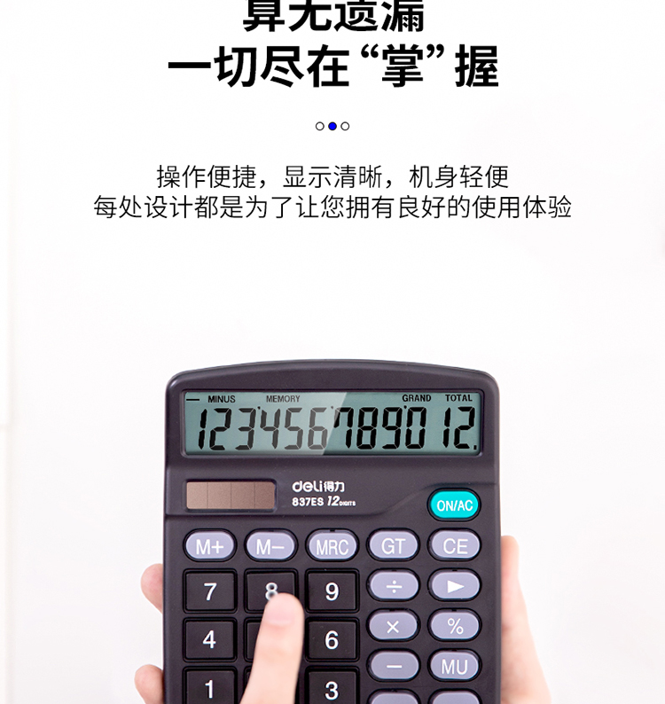 得力(deli)双电源桌面办公计算器12位大屏幕桌面计算机办公文具用品837ES
