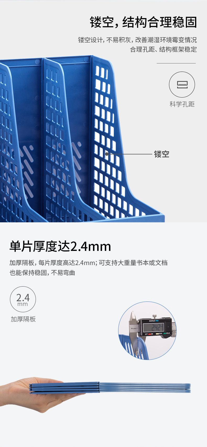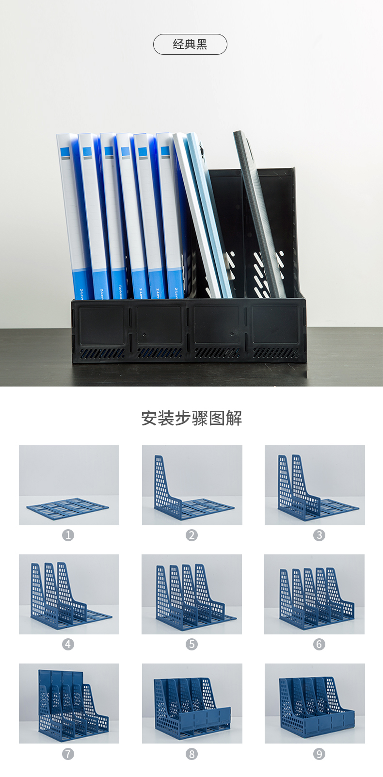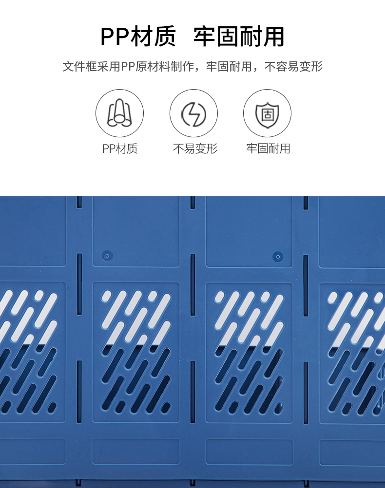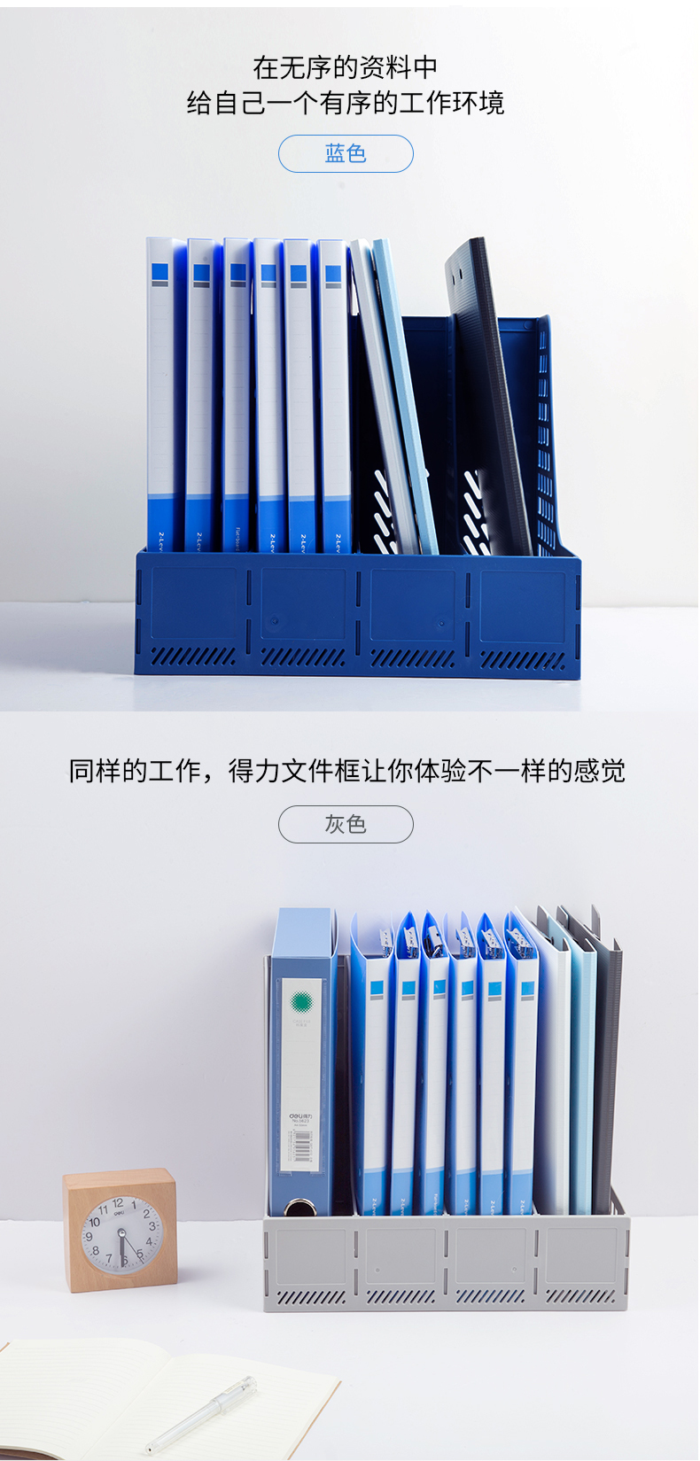 文具得力(deli)4联镂空桌面文件框书立办公室桌面四栏带标签资料文件架书本资料收纳神器蓝色27888