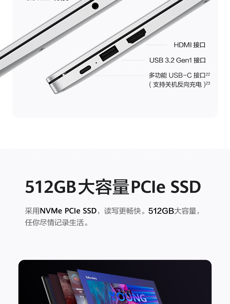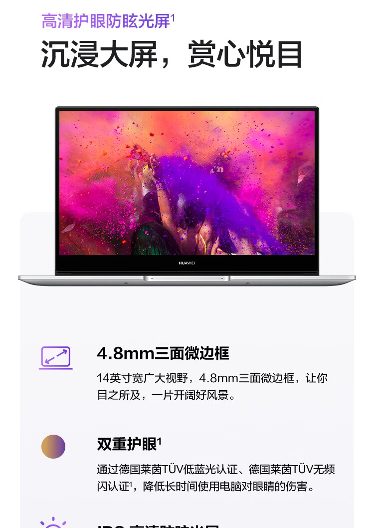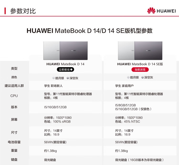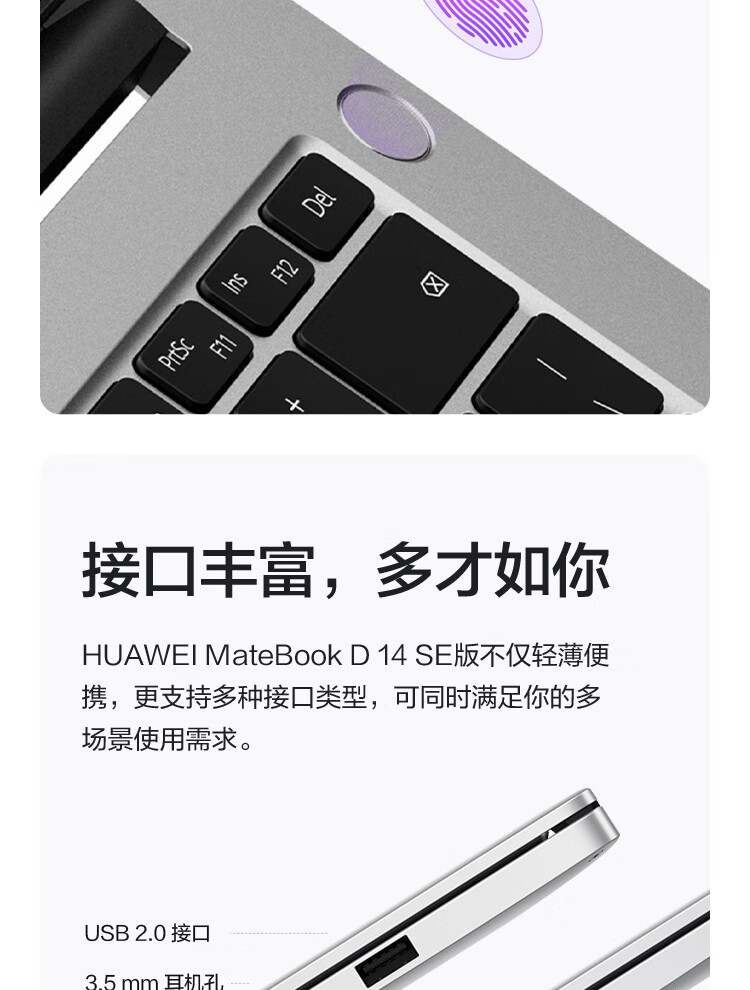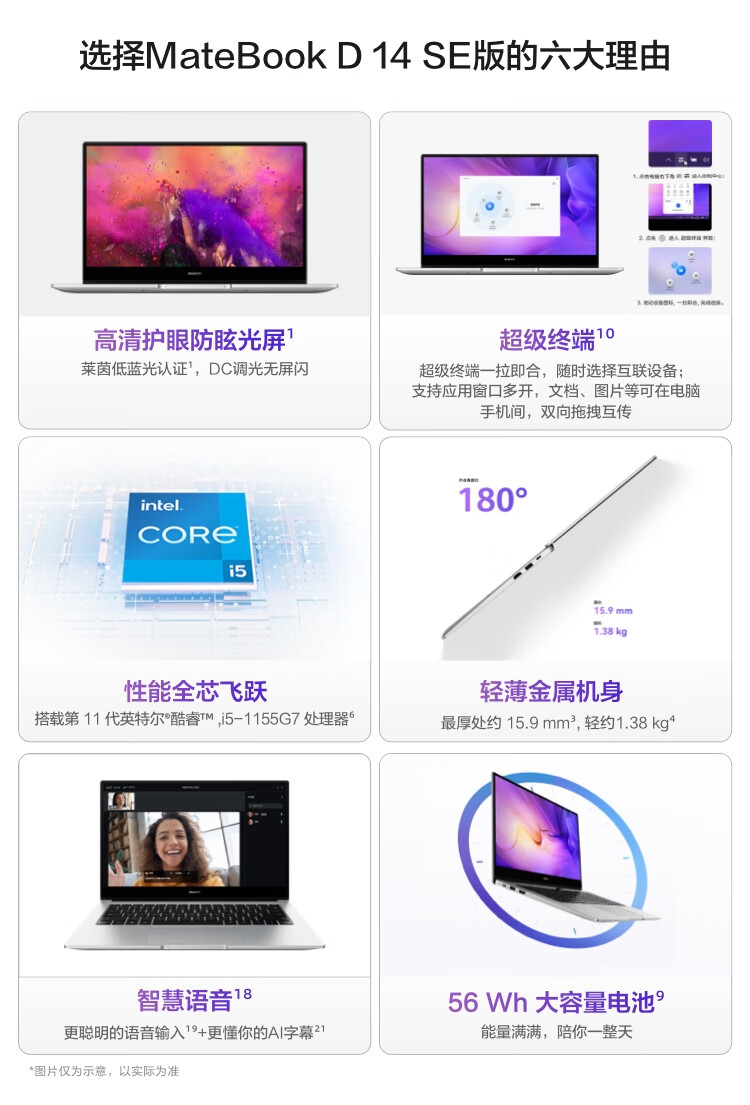 华为笔记本电脑MateBookD14SE版14英寸英特尔酷睿i516G512G轻薄本/护眼全面屏/手机互联皓月银