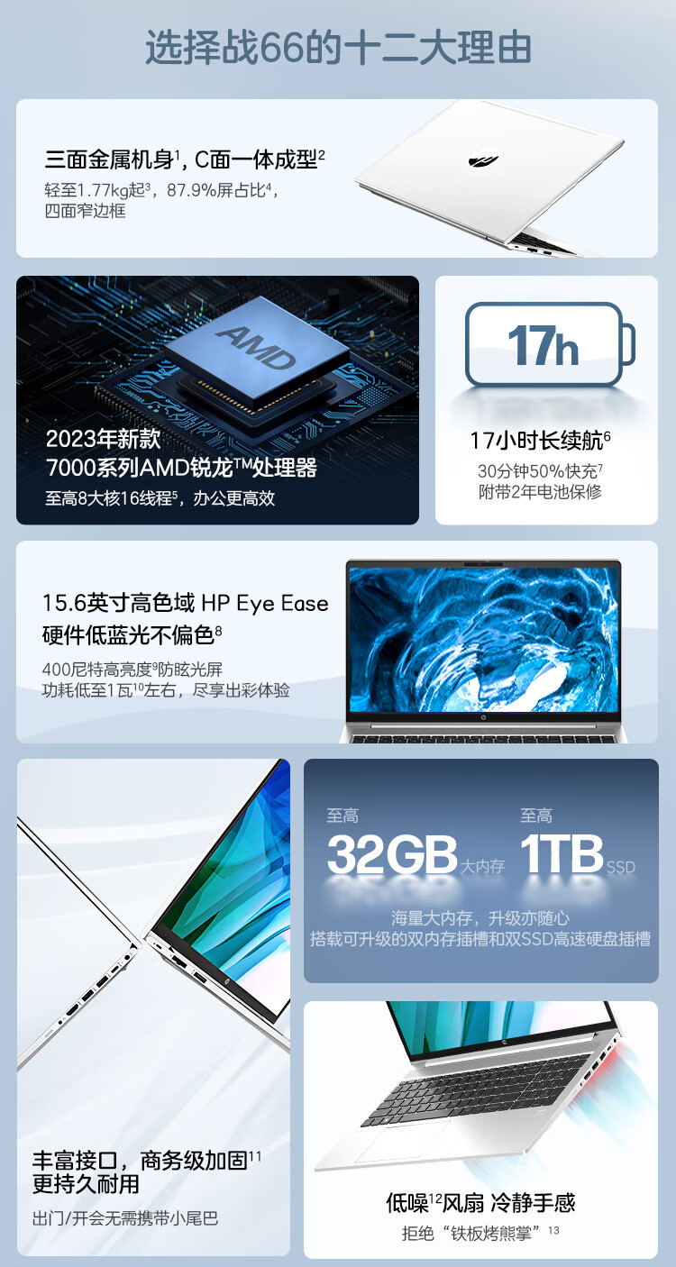 惠普(HP)战66六代锐龙版15.6英寸高性能轻薄本