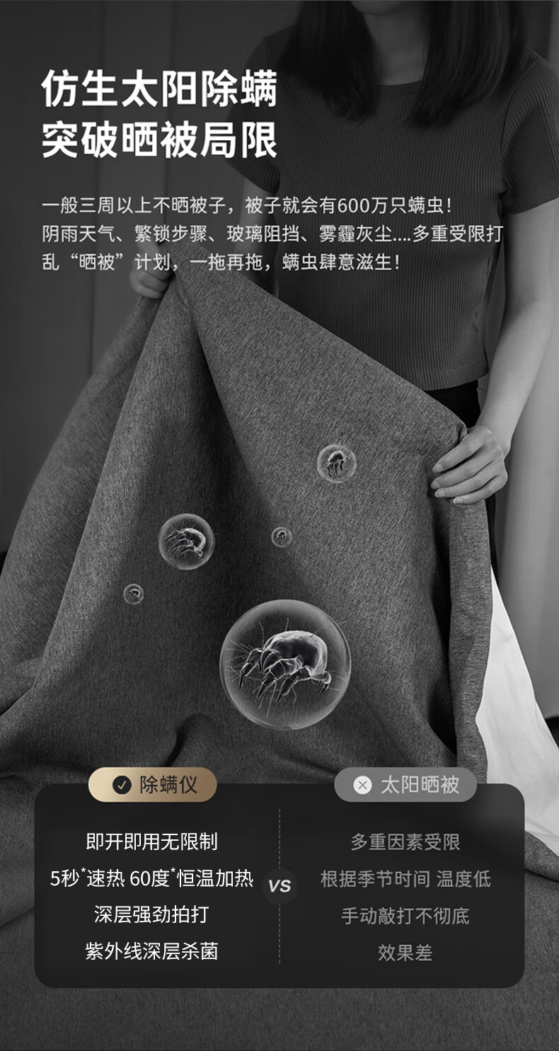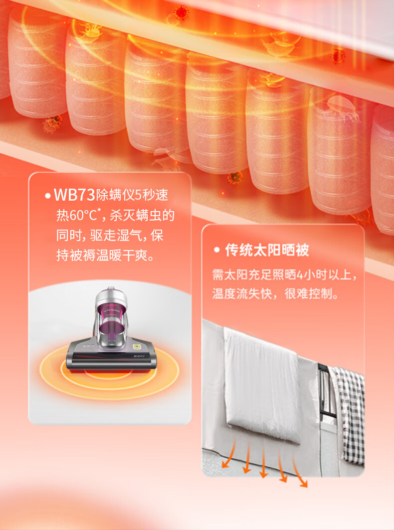 莱克吉米除螨仪WB73小型手持床铺除螨机床上加热紫外线杀菌家用吸尘除螨器WB73