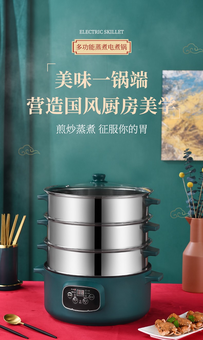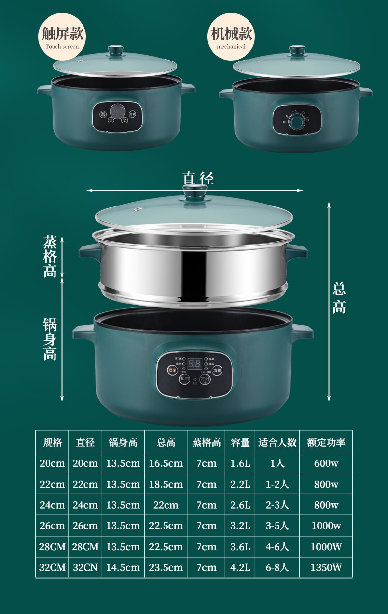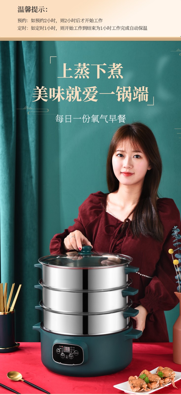 康雅顺蒸锅家用智能电蒸锅多功能双层三层预约定时多层蒸笼蒸馒头蒸煮锅304不锈钢智能版24四层【墨绿】