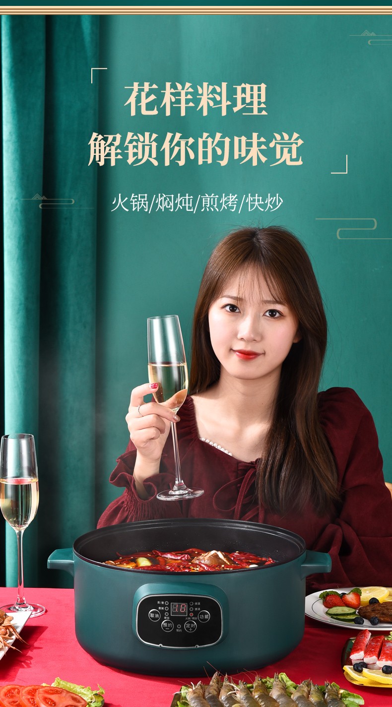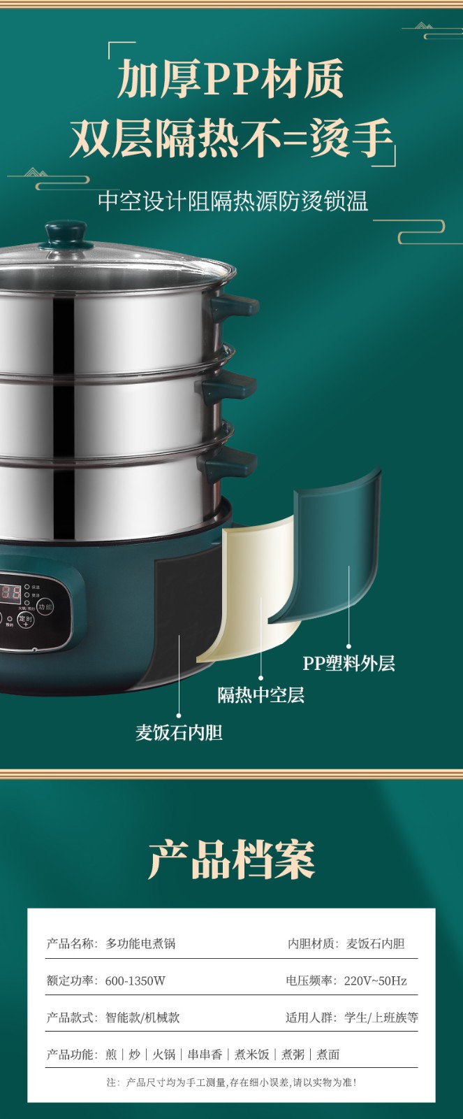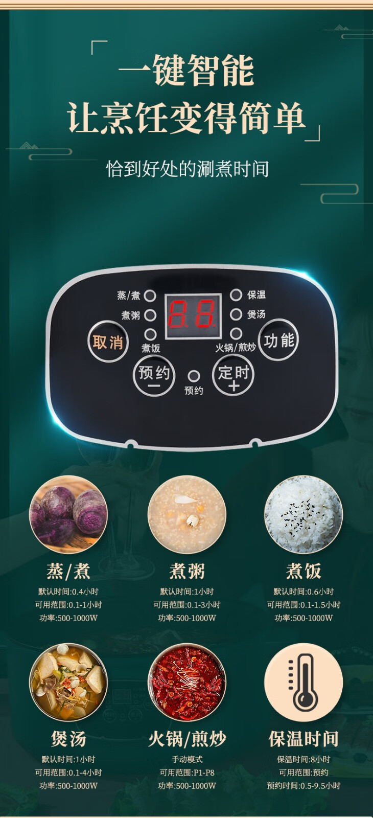 康雅顺蒸锅家用智能电蒸锅多功能双层三层预约定时多层蒸笼蒸馒头蒸煮锅304不锈钢智能版24四层【墨绿】